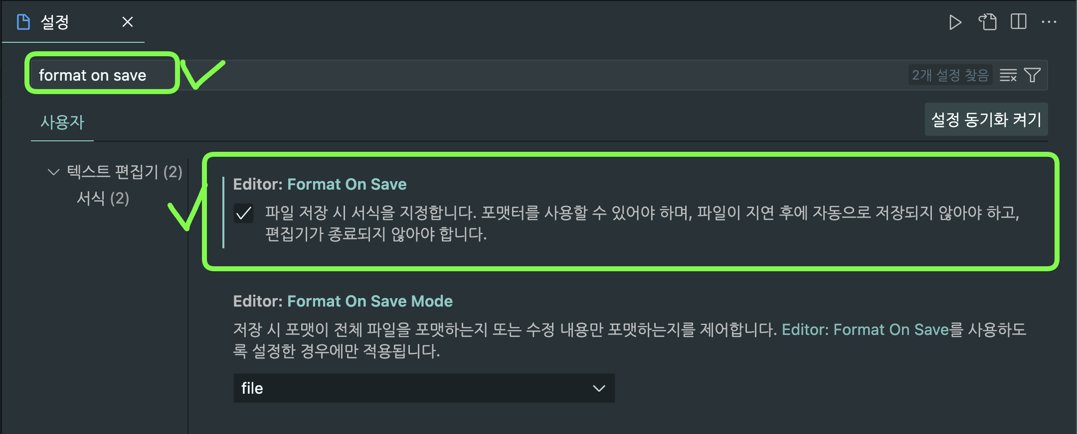 3. 검색창에 format on save 검색 후 하단에 Editor: Format on Save를 체크