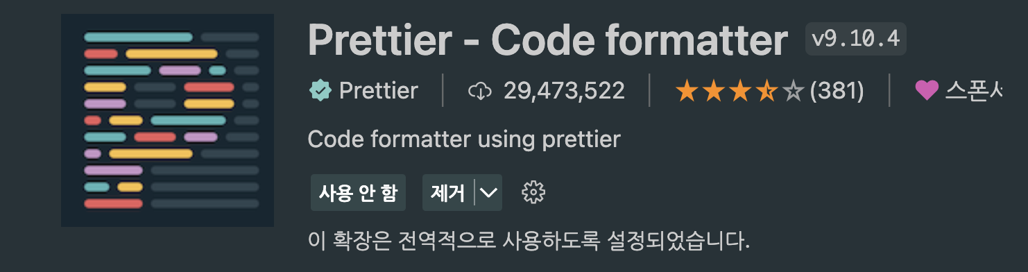 Prettier익스텐션은 코드 작성 후 저장하게 되면 코드가 깔끔하게 정리가 됩니다.