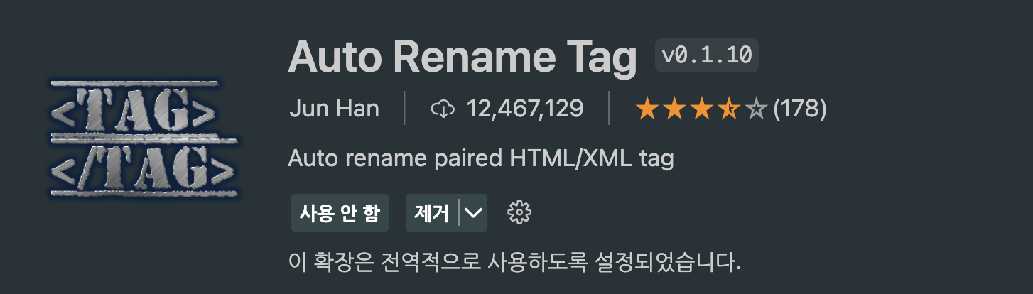 Auto Rename Tag 익스텐션은 태그 명 하나만 변경해 줘도 닫히는 짝도 같이 변경이 됩니다