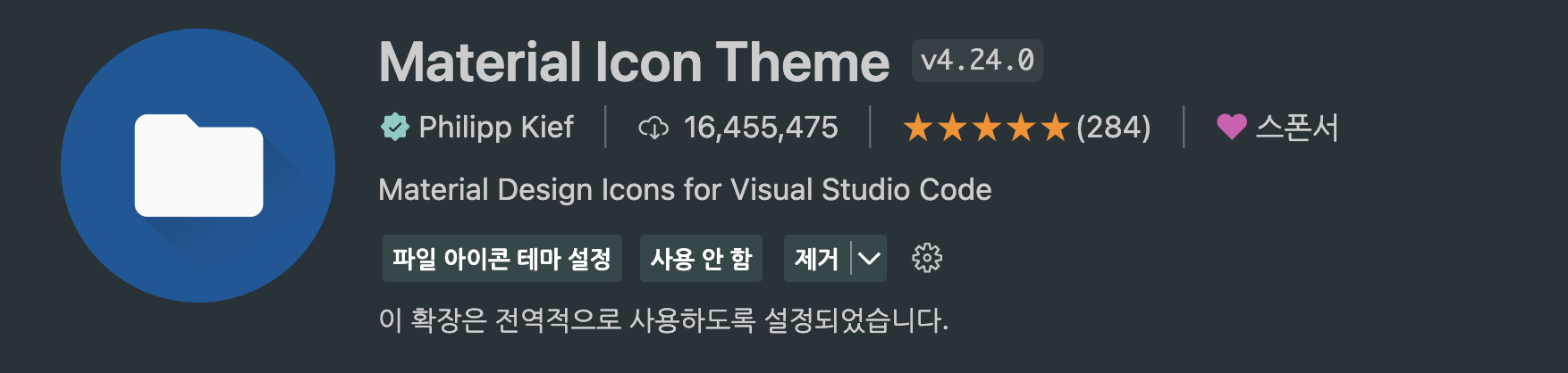 Material Icon Theme 익스텐션은 아이콘을 변경해 줍니다.