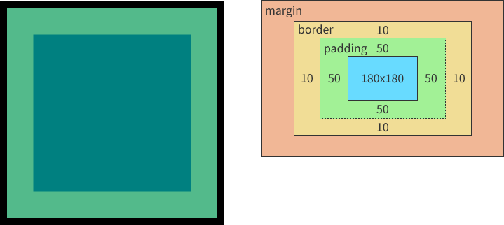세로크기 : 180px + 50px(위쪽 padding) + 50px(아래쪽 padding) + 10px(위쪽 border) + 10px(아래쪽 border) = 300px