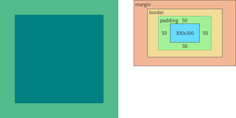 가로크기 : 300px + 50px(왼쪽 padding) + 50px(오른쪽 padding) = 400px