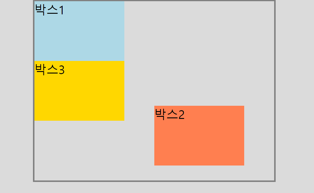 이렇게 두 번째 박스에게 position: absolute를 적용하게 된다면, 따로 독립적으로 움직인다는 것을 알 수 있습니다.