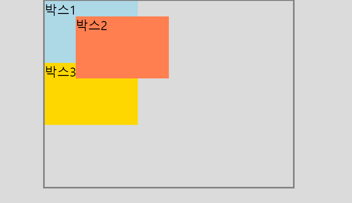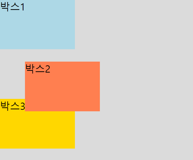 두 번째 박스가 옮겨진 만큼 세 번째 박스와 살짝 겹쳐진 것을 확인할 수 있습니다.