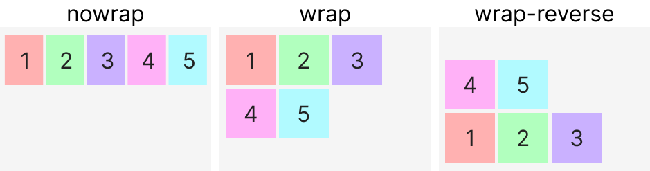 부모요소가 자식요소들을 한 줄에 담을 공간이 부족할 때 자식요소의 줄 바꿈을 어떻게 할지 정하는 속성입니다.