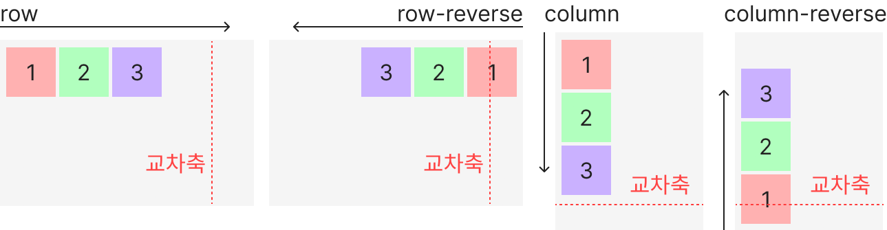 | row-reverse | 자식들이 가로 역순으로 배치 |